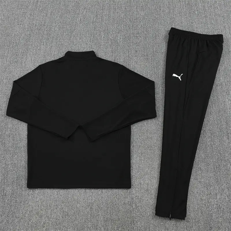 Trenerka od pamuka i poliestera, koja uključuje hlače i gornji dio s patentnim zatvaračem do četvrtine, za udobnost i stil.