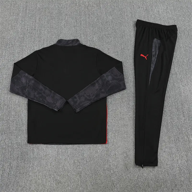 Trenerka od pamuka i poliestera, koja uključuje hlače i gornji dio s patentnim zatvaračem do četvrtine, za udobnost i stil.